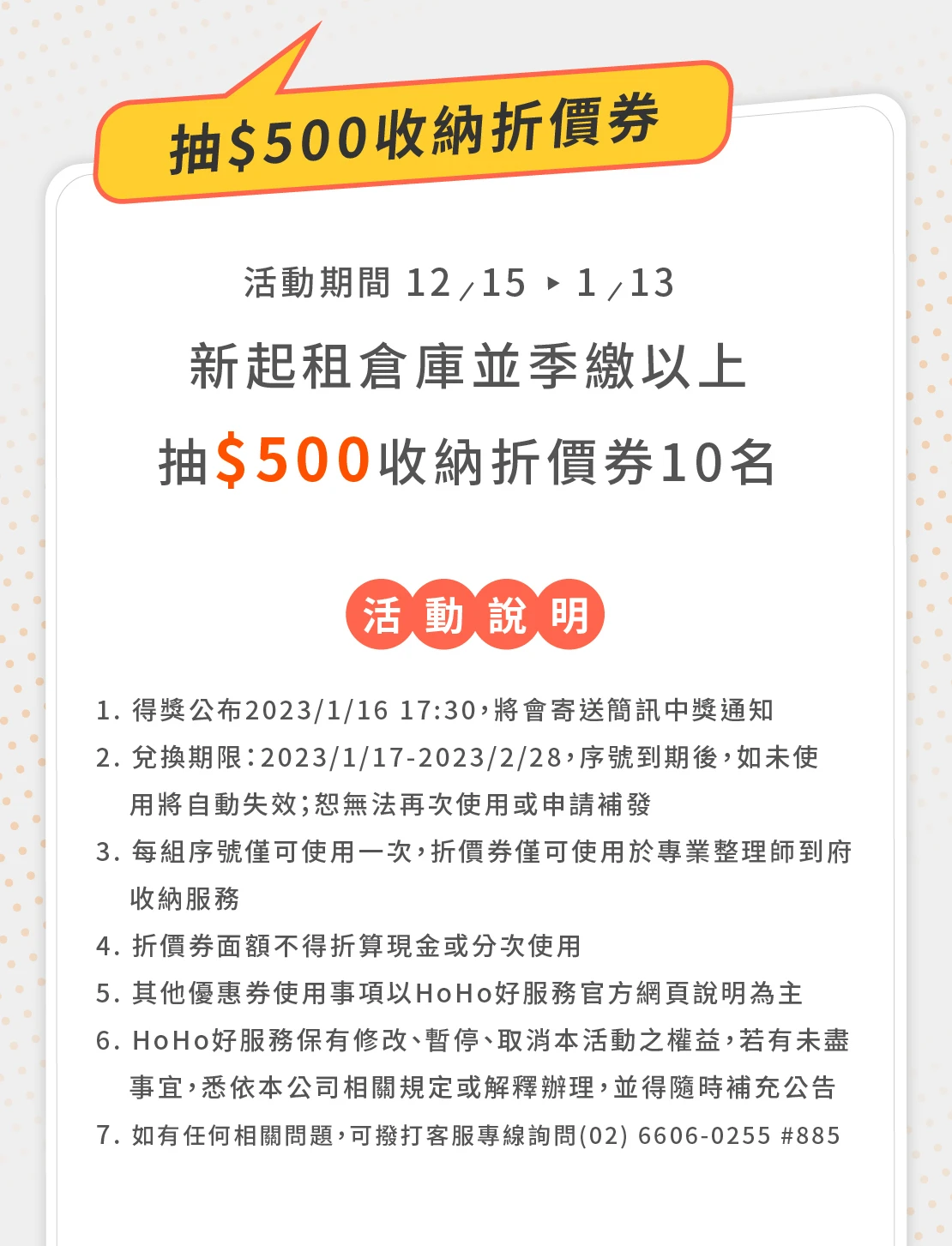 新用戶獨享好康-租倉就抽$500收納折價券!